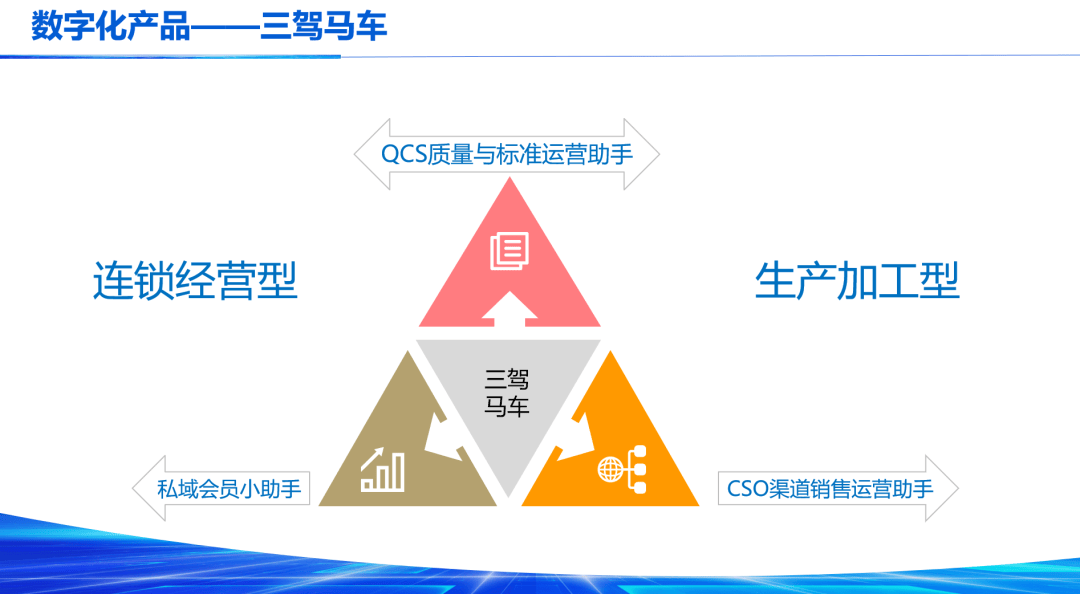 陈志勇带来《小工具大价值、助力企业增长》的分享,从行业研究、资源整合、方法沉淀的数字化能力切入,围绕连锁经营型企业和生产加工型企业,具体介绍数字化三驾马车—私域会员小助手、质量与标准运营助手、渠道销售运营小助手,展现其对私域运营、门店标准化、销售运营的数字化赋能。
