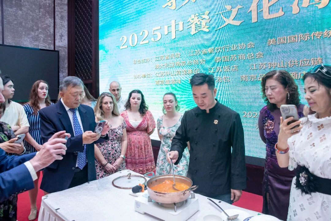 红餐网消息,10月15日,2025中餐文化海外交流活动在南京举办。美国、加拿大、澳大利亚、泰国等侨领、国际友人和餐饮行业、企业代表座谈交流、文化展演、合作签约、美食品鉴。“筷子哲学”展现中餐“和羹之美”,“舌尖乡愁”承载“文化共鸣”,从“文明互鉴”走向“命运与共”,以“一菜一世界”的胸怀,“一味一乾坤”的匠心,共话餐饮未来生态圈。