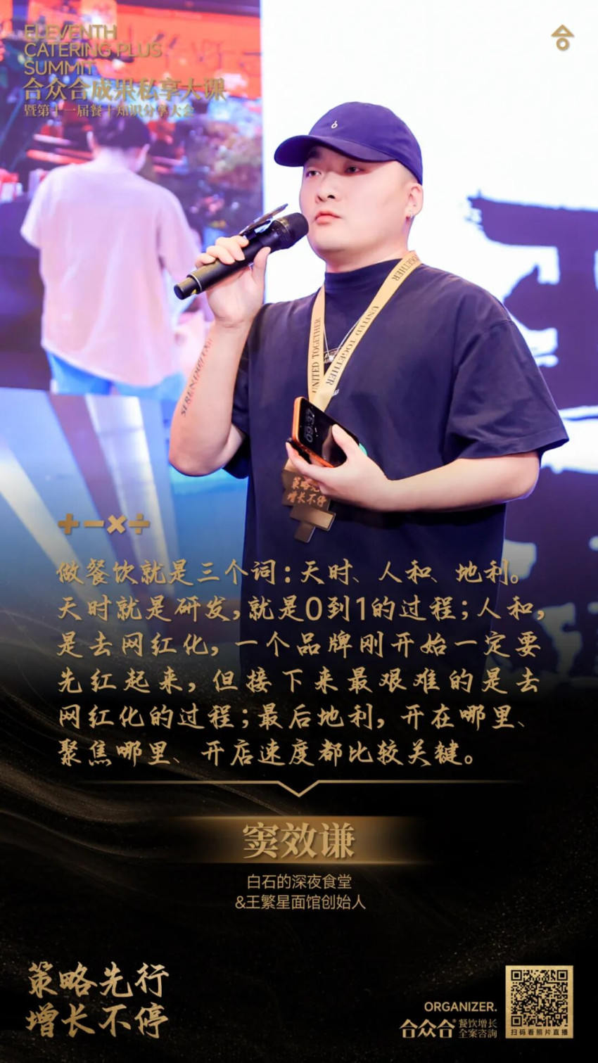 你去学别人,最终什么都不像,所以在当下极度内卷且严重供给过剩的情况下,我更期待的是每一位餐饮人能够找到你自己的那个基因,你的那个底色。你的底色是做高性价比的,那你就坚持做高性价比,你的底色是做年轻化的这一代的,就坚持做那个,不要盲目学习,盲目抄袭。这就是我给大家做的一些思考。谢谢大家。