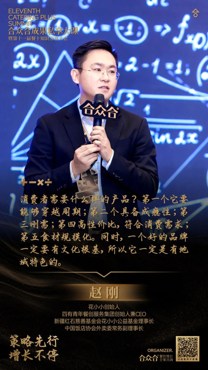 花小小创始人、四有青年餐创服务集团创始人兼CEO、新疆红石慈善基金会花小小公益基金理事长、中国饭店协会外卖委常务副理事长 赵刚