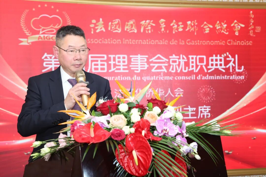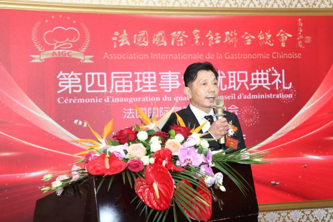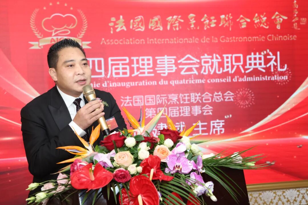 丁仕定在致辞中表示,法国国际烹饪联合总会自成立以来,始终高举“以美食为桥,弘扬中华饮食文化”的旗帜,把一盘盘色香味俱全的中国菜端进了法国乃至欧洲的千家万户。多年来,协会凝聚了一大批技艺精湛的中华名厨,在异国他乡为中国文化赢得了尊重、为侨胞争得了荣光。我们坚信,在陈建斌主席的带领下,第四届理事会必将把协会建成更加温暖的“中华厨师之家”,推动中餐与法国美食深度融合创新,让中国味道响彻世界舞台,将总会影响力从巴黎扩展至全欧洲,为旅法旅欧侨胞争取更多权益、搭建更大平台。