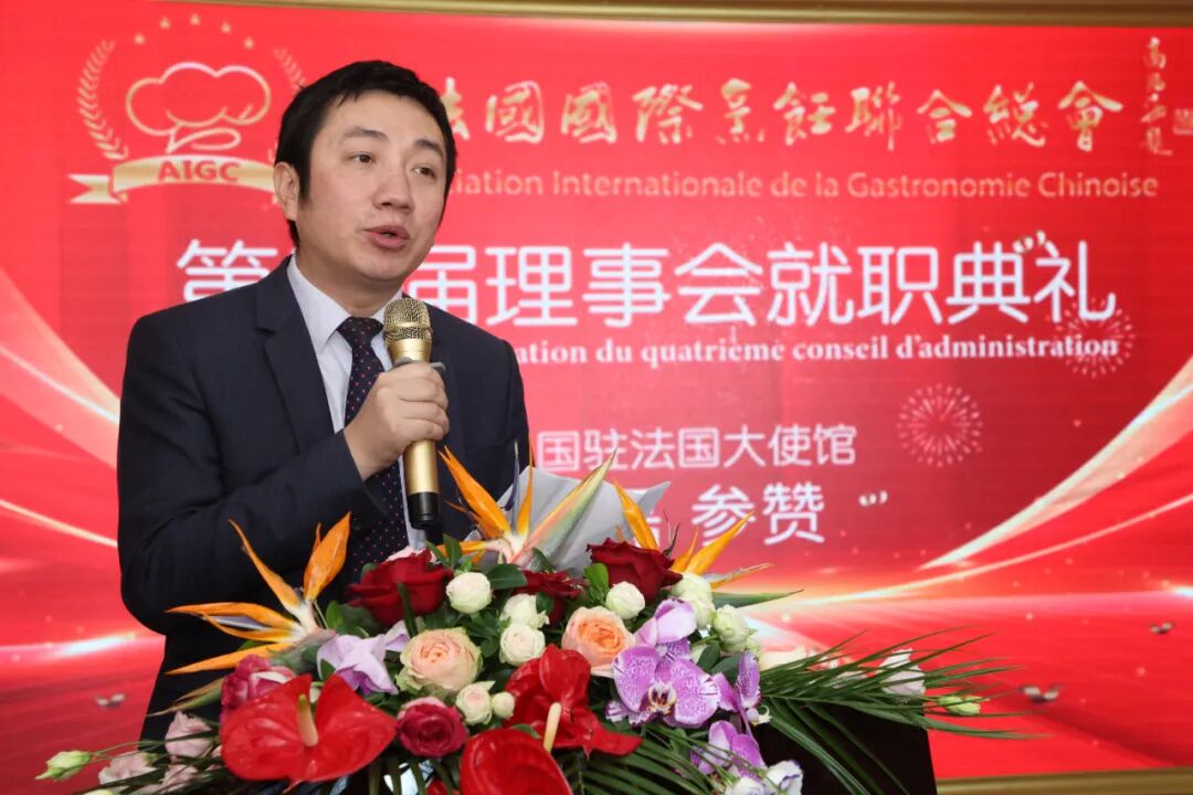 万磊在致辞中表示,中国和法国是东西方美食的突出代表,两国餐饮文化源远流长、影响深远。中餐不仅是街头巷尾和百姓家庭的烟火气,也是海外游子心中对思乡之情和“妈妈味道”的岁月痕,更是五千年中华文化和中国人民走向世界的活名片。法国国际烹饪联合总会在王加清会长领导下,共同经历了新冠疫情的挑战,也面临着市场变化和消费升级,做了大量工作。希望新一届主席团成员在陈建斌主席带领下,进一步帮助在法餐饮从业者联合自强;进一步在法推广中餐文化;进一步做大更多餐饮品牌和培养更多餐饮人才,服务中餐繁荣计划,提升中餐的国际表达力和全球影响力。