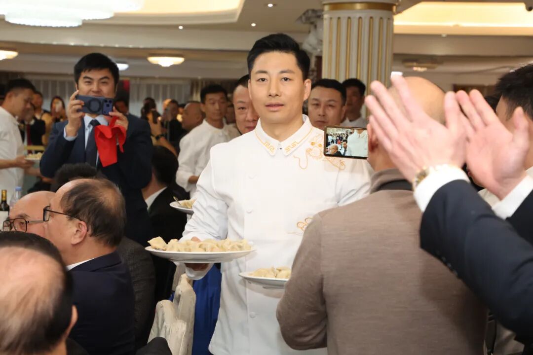 中国烹饪大师刘强带领20位中国名厨以出场秀的方式,为现场人员端上热气腾腾的手工水饺,拉开就职典礼晚宴序幕。