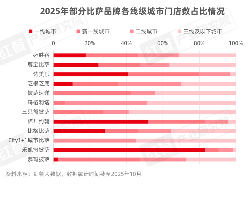 比如达美乐,2025年新入驻城市同样也以二线和三线为主。数据显示,截至10月,其一线城市门店占比从2024年初60%降至40%。