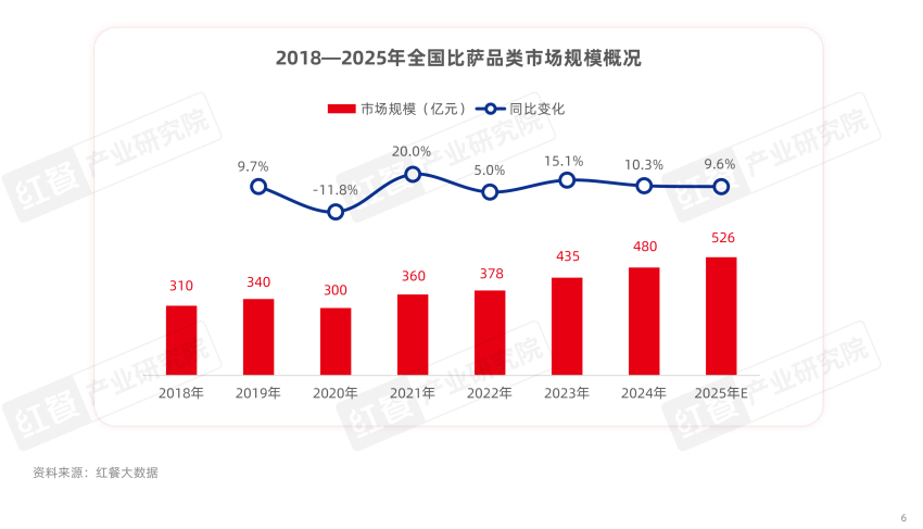 一边是披萨品牌在产品价格上,越来越注重性价比;另一边是下沉市场成为了品牌们开城掠地的主战场。双重驱动下,比萨品类市场规模保持着稳健增长态势。红餐大数据显示,2024年全国比萨品类市场规模达到480亿元,同比增长10.3%,预计2025年比萨品类市场规模将超过500亿元。