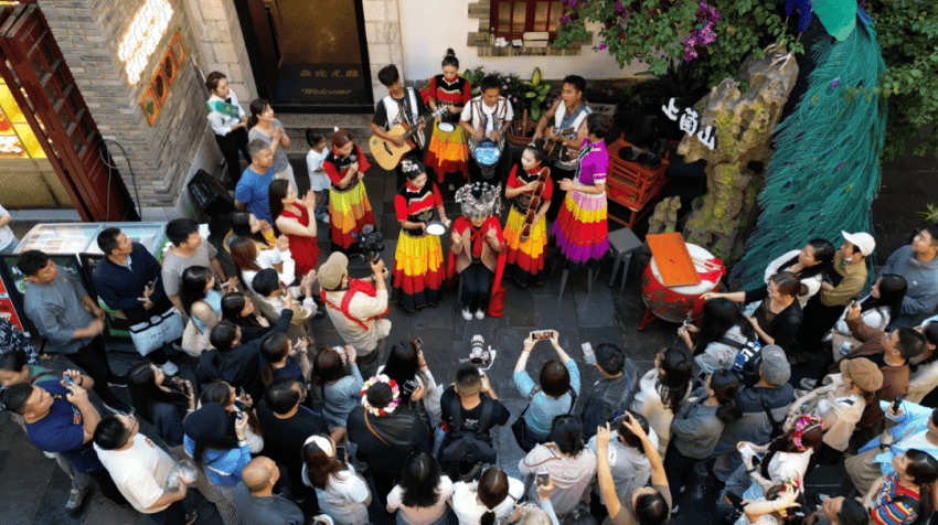 用餐过程中,食客们还能欣赏云南民族歌舞、聆听敬酒歌,甚至参与“高山流水”等少数民族待客的最高礼节,在菌汤之外,感受当地的风土人情。