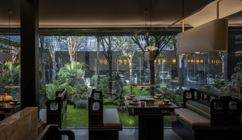 譬如在空间打造上,昆明南街店中庭设置了菌菇艺术装置,绿植环绕,食客们仿佛置身于原始森林间,成为食客们进店的必打卡点。