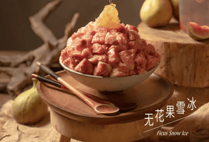 再比如被网友评为NEED创意韩国料理必吃榜第一的“蜂蜜无花果雪冰”,木质的托盘上面,是个大饱满的粉色无花果果肉和牛奶冰,顶上再配上晶莹剔透的蜂蜜块,颜值拉满。