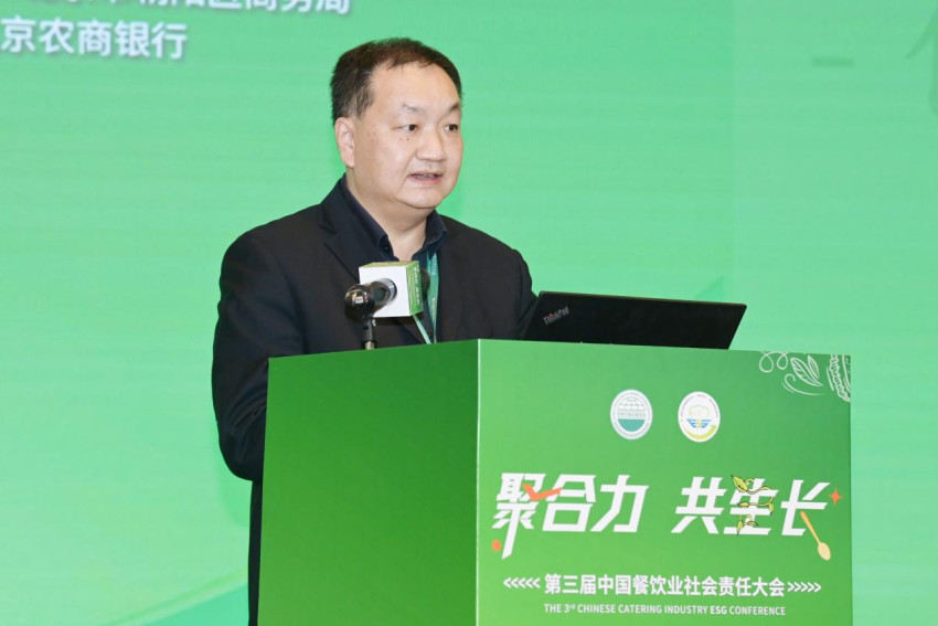 商务部原部长助理、中国商业经济学会名誉会长黄海在致辞中结合《中共中央关于制定国民经济和社会发展第十五个五年规划的建议》,阐述了绿色转型、科技创新、民生保障、治理升级等领域部署与 ESG(环境、社会、治理)理念的深度契合。他指出,规划建议为包括餐饮企业在内的所有企业,指出明确的政策导向和工作方向。