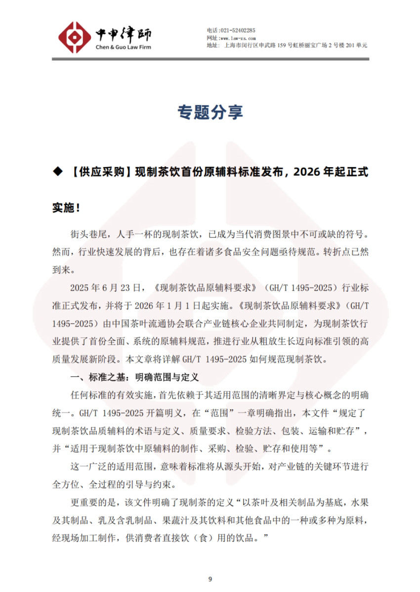 【供应采购】现制茶饮首份原辅料标准发布,2026年起正式实施