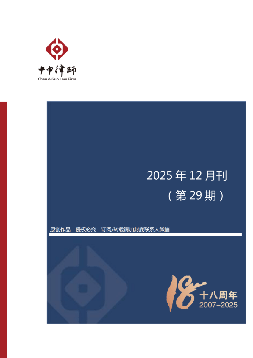 声明:本期刊版权归上海中申律师事务所所有。本期刊仅为实时资讯与法律知识分享,不作动态维护,不视为上海中申律师事务所或其律师出具的正式法律意见或建议。如需转载或引用本期刊的任何内容,请注明出处。