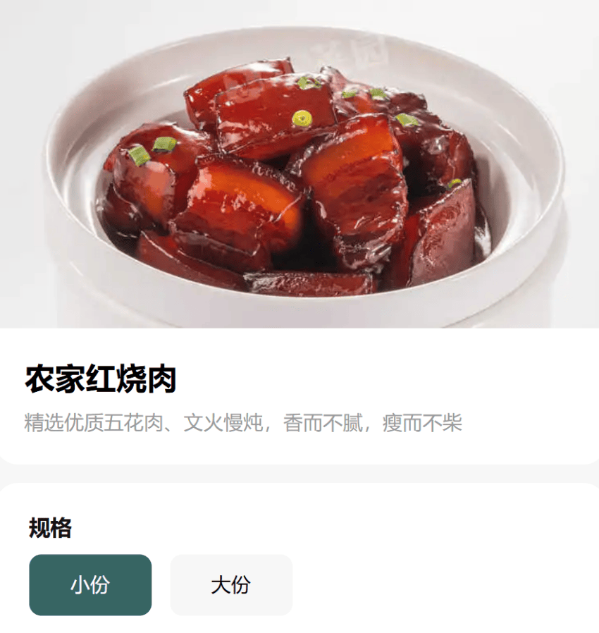 比如上文提到的海底捞区域上新小份菜系列、小菜园的招牌红烧肉提供小份选择、大师兄推出迷你小碗面和小碗卤肉饭,还有很多以传统聚餐场景为主的饭店、酒楼,也纷纷增设小份菜的选项。