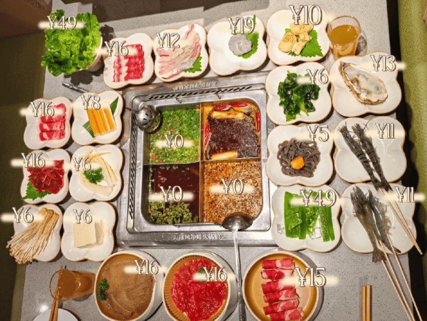 相比之下,重庆上新门店的小份菜系列则适用全周所有时段,价格也更具吸引力,菜品最低仅3.8元,最高16元,锅底为常规的四宫格。