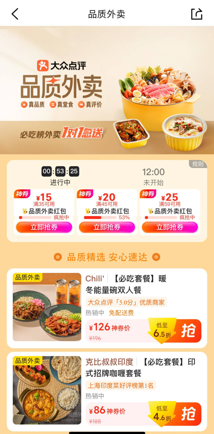 公开报道显示,此前,大众点评“品质外卖”已推出“高分堂食店工作餐”“周末外卖犒劳餐”等多个特别企划,满足消费者在不同场景下的品质外卖需求。