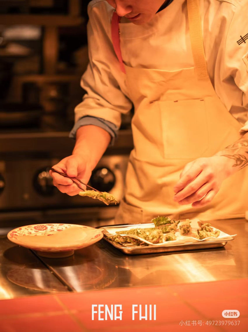 该店经营时段为上午10:00至晚上23:00,白天供应正餐,夜晚则切换为以特调鸡尾酒和精品葡萄酒为主的酒吧模式。菜品方面,FENG FULL打造了30多款SKU,主打东北创意融合菜,既保留了锅包肉、地三鲜、酸菜白肉等东北经典菜式,也融入了青酱牛肉塔塔等西式创意菜品。值得关注的是,FENG FULL打破了大众对于东北菜“量多实惠”的固有印象,菜品定价在20~188元不等,人均消费约200元,主打高端轻奢消费市场。