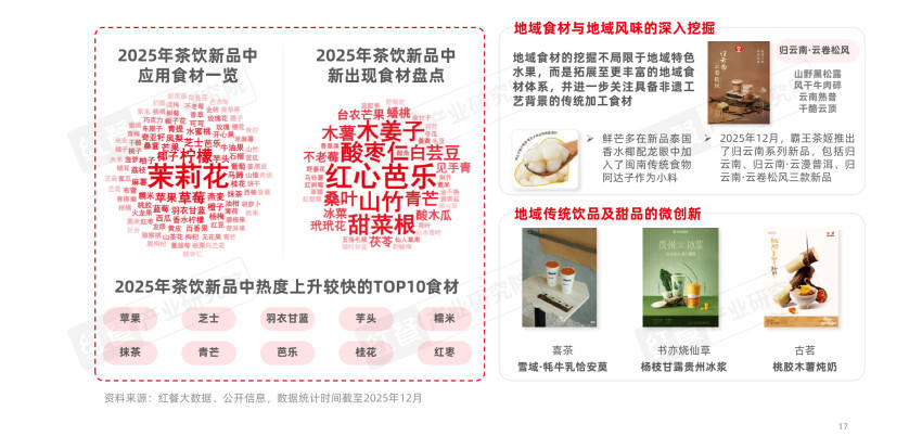 甚至,还有不少品牌将原料的创新向更丰富的地域特色食材体系延伸。《报告》显示,2025年,木姜子、甜菜根、木薯、糯米等具备地方风物特色的食材纷纷应用于茶饮研发,成为品牌打造产品差异化的重要抓手。