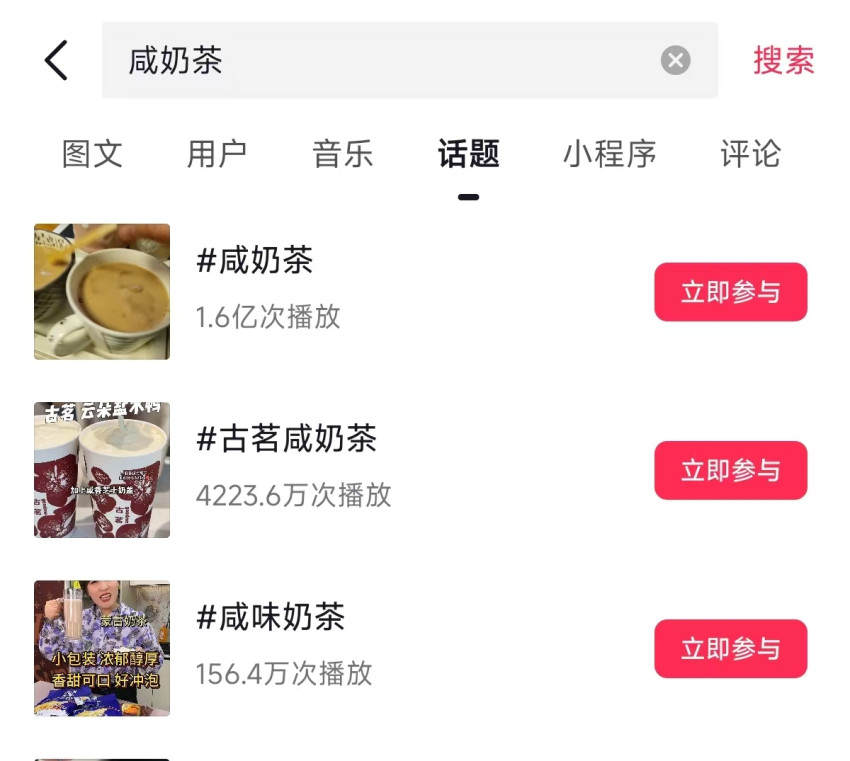 社交平台上,与“咸奶茶”相关的话题热度居高不下。在小红书平台,仅“咸奶茶”这一话题,浏览量就超5460万,而在抖音平台,与“咸奶茶”相关的视频播放量更是突破1.6亿次。