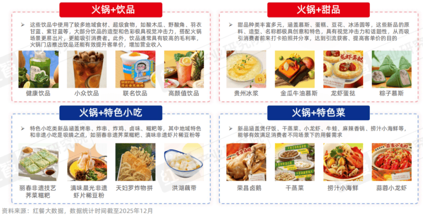3.火锅+:饮品、甜品、特色小吃等新品与火锅具有互补性,满足消费者多元化需求