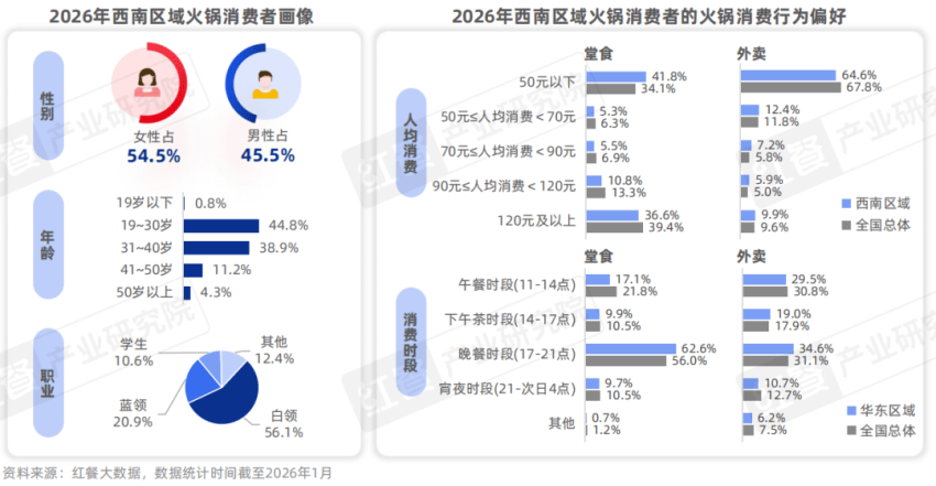 具体到华东区域的火锅消费市场,其消费群体整体呈现出“年轻化与职场属性突出、人均消费高”的核心特点。