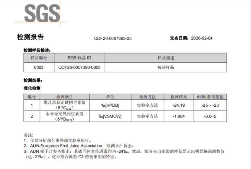 泰国香椰水基地的落成也保障盼盼100%NFC椰子水通过欧洲果汁协会(AIJN)SGS检测,未添加任何外源水和外源糖,产品品质达到欧盟标准。