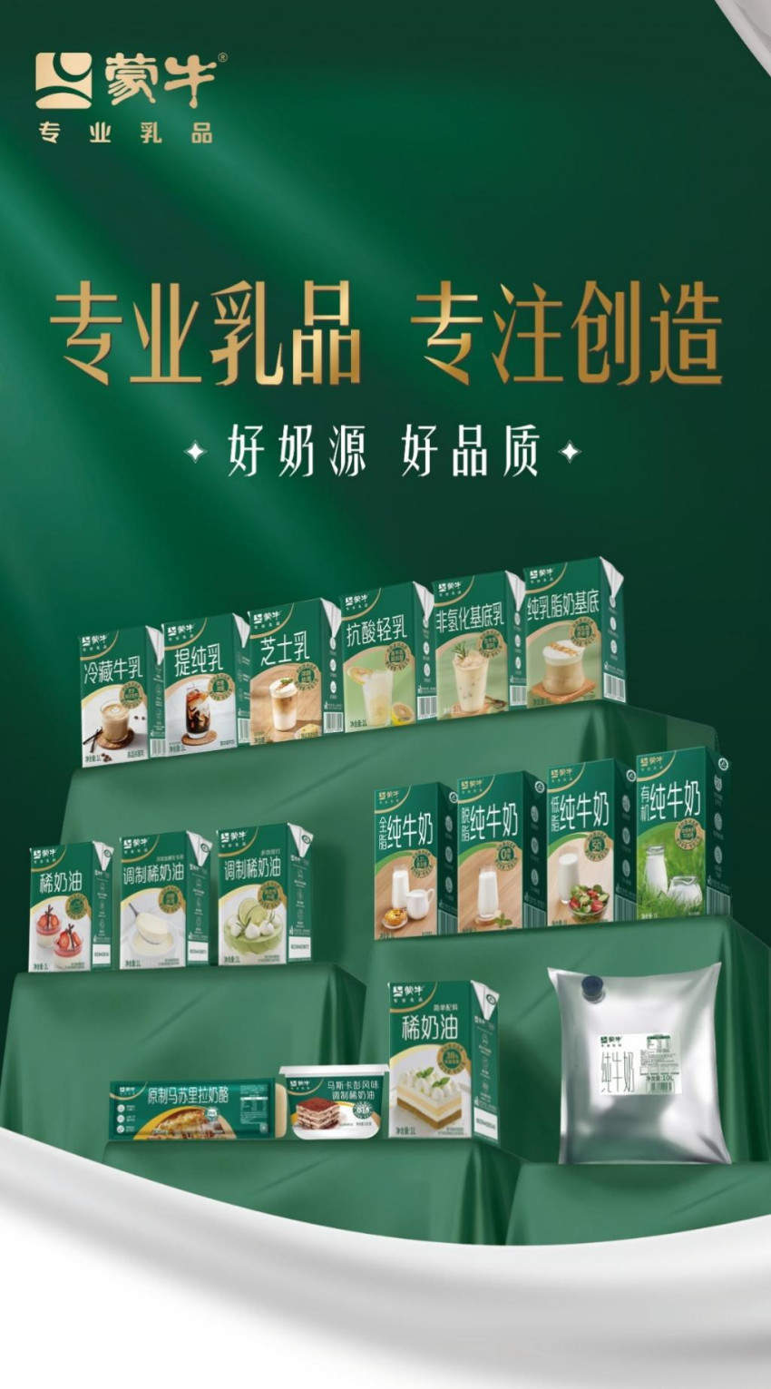 面对行业对乳原料提出的更高要求,蒙牛专业乳品快速响应,推出三款核心产品,精准匹配茶饮与咖啡市场的创新需求: