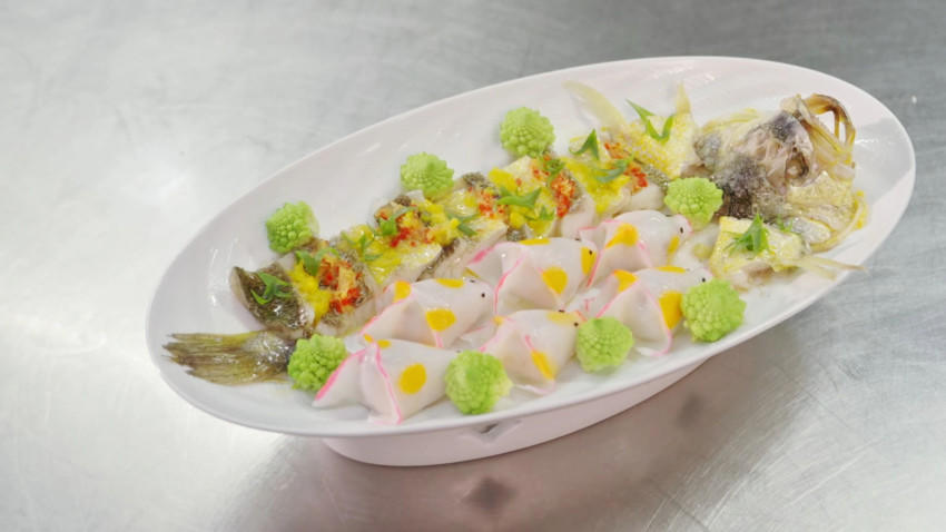△双喜鱼饺蒸大黄鱼,图源:红厨网摄
