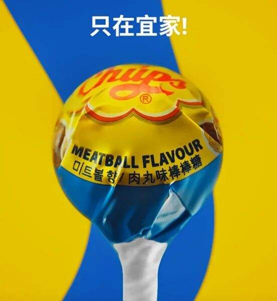 珍宝珠ChupaChups今日官微发布,其携手宜家家居,限定上线肉丸味棒棒糖,仅在宜家渠道发售。(珍宝珠)