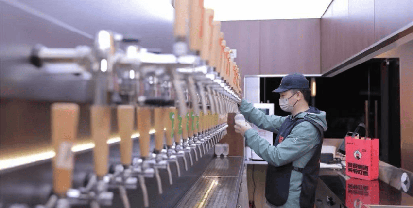 值得一提的是,去年10月,蜜雪冰城宣布收购鲜啤福鹿家53%的股权,后者主打社区“打酒站”模式,500ml酒饮产品售价约6-10元,据公开资料,全国门店数量已超过2400家。