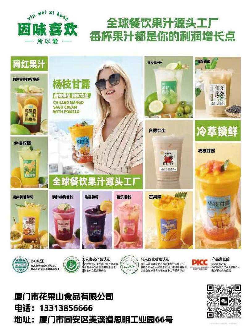 厦门市花果山食品有限公司成立于2000年,是中国餐饮供应链领域专注于“餐饮果汁及茶饮原料解决方案”的领军企业。作为“全球餐饮果汁源头工厂”,花果山以“每杯果汁都是你的利润增长点”为核心价值,致力于为餐饮企业提供“高效、安全、差异化”的饮品解决方案。