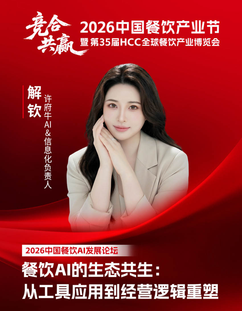 目前,许府牛AI&信息化负责人解钦确认出席2026中国餐饮AI发展论坛,届时将在圆桌对话环节,就“餐饮 AI 的生态共生:从工具应用到经营逻辑重塑”议题,与餐饮品牌创始人及产业上下游领军人物,共研行业发展新路径,为餐饮产业高质量发展凝聚新动能。