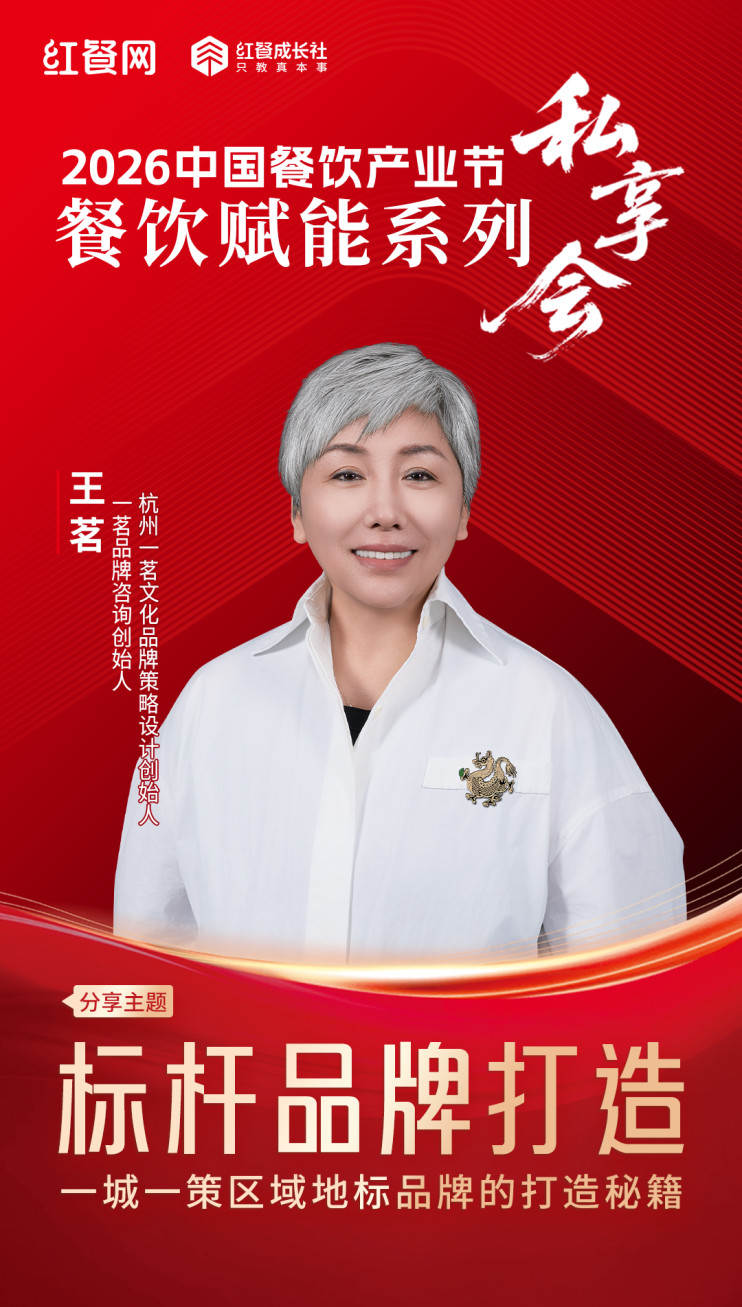 目前,一茗品牌咨询创始人、杭州一茗文化品牌策略设计创始人王茗确认出席2026中国餐饮产业节餐饮赋能系列私享会,届时将,届时将于3月24日上午09:00-12:00在私享会A区(会议厅1-101A)就《标杆品牌打造:一城一策区域地标品牌的打造秘籍》课程主题进行现场分享。